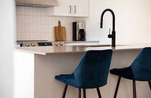 Our one-bedroom queen size bed suites are fully furnished apartment with separate a bedroom, located on the 1st & 3rd floors of the property, with a city view. The suites are approx. 650 SF, beautifully designed, with lots of natural light. The suites are fully equipped for short, medium and long stays. Laundry machines are either inside the suites or located in a common area on the 4th floor. We offer amenities through the stay such as shampoo, conditioner, body gel, hand soap, coffee pods, dishwashing soap, washing machine pods, and cleaning supplies.