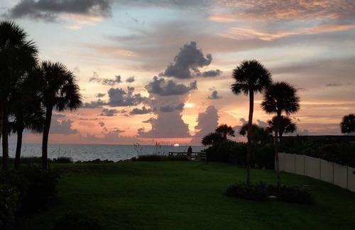 Enjoy spectacular gulf views, year round tropical weatherand sunsets from this gulf front Manasota Key villa. Manasota Key, located south of Sarasota,is a hidden gem on the gulf coast of Florida. It is quiet and laid back, ideal for guests that want to avoid the crowded beaches.This is a two bedroom two bath end unit with soaring vaulted ceilings and an abundance of natural light.Wake up to sweeping gulf views in the master suite. The master suite has king bed andincludes a private renovatedbathroom and walk in closet.Have your coffee on the private lanai, just off the master. The large, second bedroom includes a twoqueen beds andhas a vaulted ceiling, large windows with an updated bathroom. The kitchen features granite countertops, new backsplash,new stainless steel appliancesand is fully furnished with high quality dish andcookware.A heated community pool is available just steps from the villa.There is a washer and dryer and storage closet full of beach items for you to use, along with a BBQ grilll. Kayaks and bikes may be used with a signed waiver. Covered parking under the villa. Hang out at the beach, take a dip in the gulf, and have lunch or dinner at one of the restaurants on the key. End your day with a spectacular sunset at the beach or your private lanai. Look for the elusive "green flash."