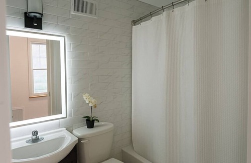 Modern 2BR/2BA apartment just 15 min from Manhattan with private balcony, full kitchen, fast Wi-Fi, in-unit laundry, and free garage/driveway parking. Sleeps 5 with 1 Queen & 1 Full bed. Includes en suite master bath and basement storage. Perfect for remote work, extended stays, or quick getaways.
