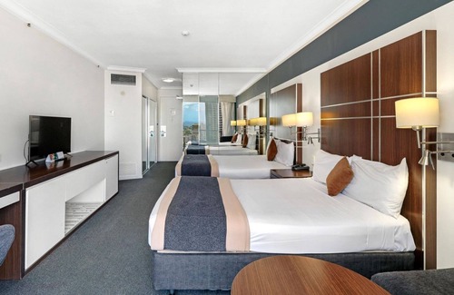 Step out and find yourself moments from Surfers Paradise Beach and Chevron Renaissance Shopping Centre. capturing stunning coastal views, you can wake to watch the sunrise over the sea, enjoying your morning coffee out on the balcony. Stay in the heart of the Gold Coast, 1 minute walk and second building from the Surfers Paradise Beach and all the shops, clubs, bars, restaurants and attractions around Cavill Avenue. You’re also metres from the beachfront markets, tram line. The deluxe beachfront Ocean View apartment accommodation is a cosy hotel room with two double beds, a work desk and a furnished balcony overlooking the ocean & beach. It also has a relaxing shower bath, flat-screen TV, internet and some general kitchen items. You also have access to a gym, lounge / dining deck and open-air Jacuzzis.