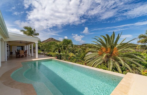 Villa Maracuja is a luxurious three-bedroom property with panoramic views over Grand-Cul-de-Sac lagoon and Turtle Island. Nestled in the heights of Vitet, this vacation house with swimming pool offers spacious, bright spaces and upscale amenities for a perfect Caribbean getaway.