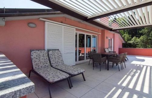 Marina Portorož Family Friendly Apartment 2 is a spacious and modern accommodation located within the Marina Portorož complex in Portorož, Slovenia. Amenities include air conditioning, free Wi-Fi, and a terrace. Guests have access to on-site parking and an elevator. The apartment is conveniently situated near the beach, restaurants, and the center of Portorož. Nearby attractions include tennis courts, mini-golf, and various dining options. Note: Private parking is available, and reservation is not required. Wi-Fi is available throughout the property. Pets are not allowed. This two-bedroom can accommodate up to six guests. It features a flat-screen TV and is combined with a living room, sofa and kitchen. The private bathroom is equipped with a shower and toilet. Thanks to its excellent location, everything you'll need for your vacation is just a short walk from the property. Grocery stores, cafes, restaurants—everything is within a 100 m radius. The beach is 600 m away from the property. The airport is 35 km away from the property.