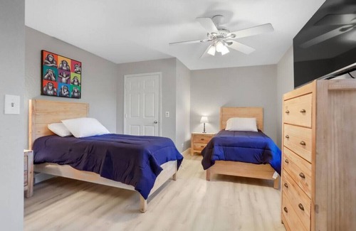 This 4BR 2 BA home features a Luxury heated pool and hot tub that is mimicked off the FountaineBleau in Miami with 2 day beds and plenty of seating, just two blocks from Atlantic Ave. The Master bedroom has a king size bed, living room area, private balcony, Walk in closet as well as its own bathroom. Every bedroom in the home has a TV with Comcast cable and internet. The kitchen has all the essentials and then some. Patio has an outdoor grill area with everything needed for a family BBQ.