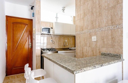 Stay in the heart of Guarujá in this luxurious one bedroom apartment. Enjoy the convenience of a fully equipped kitchen, spacious living room, and one bedroom with a Smart TV featuring great image and sound quality, Netflix (to use with your own account), and Youtube.