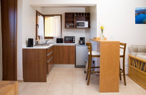 The flat is very well equipped, with electric stove, electric oven, toaster, coffee maker, microwave, small refrigerator and hairdryer.