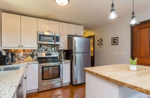 Living, dining, and eat-in kitchen are all together in this large, open, and light room. The living room has a 46' LED TV. A large deck is off the great room, at the front of the house. Relax, dine and enjoy the views of the mountains year-round, and the ski slopes once the leaves have fallen from the trees.