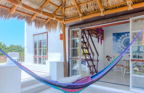 Spacious master suite with 1 bedroom: 1 king-size bed, separate loft with 1 single and 1 double bed, kitchen, bathroom with tub and an oversized terrace with hammock. This master suite can accommodate up to 4 people and is fully equipped. It has a kitchen, air conditioning, internet, TV, cleaning service and laundry. In addition you can make use of common areas like the garden, swimming pool, bar, grills and parking.