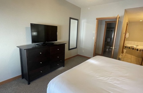 This Master unit sleeps 4 with a king in the bedroom and a full sofa sleeper in the living area, full kitchen, full bath with jetted tub, washer and dryer, fireplace, balcony/patio, 2 televisions, 2 telephones, and more.