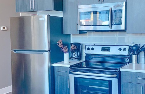 Designed with the traveler in mind, this Studio Suite (Sleeps 4) caters all your needs in a modern, spacious layout with metropolitan decor that gives this suite a sophisticated edge. The Michigan Suites are thriving with downtown vibes. The suite offers guests a modern space with custom comforts that are a cut above the usual Vrbo experience. It is uniquely designed to its own stylish accents and convenient amenities to give you the perfect mixture of home and away. At the premium status level, our suite provides you with a premiere experience in a premiere city.