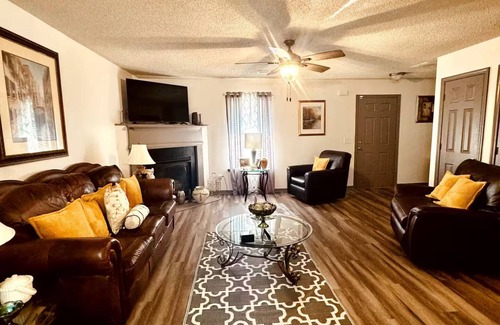 Charming townhouse in beautiful McDonough, GA, just minutes from the historic town square! Enjoy tree-lined streets, boutique shops, local dining and Southern hospitality. This cozy retreat blends town and country charm in a peaceful neighborhood. Getaway and explore all McDonough has to offer. Walk to restaurants, shop local, or simply unwind in a quiet welcoming space close to everything. Nestled just south of Atlanta, GA. Keep it simple at this peaceful and centrally located place.