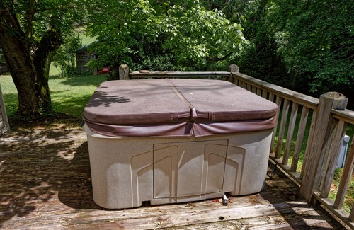 The inviting hot tub is on the back porch. It accommodates up to four people, with a nice view of the old horse paddock, as well as the mountains in the distance. With a little luck, you may see our resident herd of deer wander through in the morning or afternoon. We also drain and clean the hot tub after every guest leaves. We only add a couple of 1" tabs of bromine (no other chemicals) to insure a pleasant guest experience. Ask our competitors what their policy is.