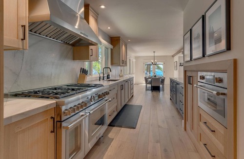 Steps away from the beautiful shoreline of Lake Tahoe you will find McKinney Bay Retreat. This newly remolded home boasts a modern farmhouse design with large windows, featuring the landscaped yard and views of the dreamy blue waters of Tahoe. The home is on the highly sought-after West Shore located in Homewood, situated close to downtown Homewood and a 5.5 mile drive to downtown Tahoe City. The home has a stunning living room and kitchen which is a great space for the whole party to gather. With commercial grade kitchen appliances that are all touch activated, this is a chef’s dream kitchen. Imagine preparing meals for your friends and family while being able to enjoy the views of Lake Tahoe. The home also features special amenities including air conditioning, shuffleboard, foosball table, horseshoes, and a covered hot tub that are sure to bring entertainment for the whole family. With large flat screen tv’s throughout the home and a downstairs living area that has a wet bar, this would be a great place to watch sports, your favorite tv shows or host a movie night.