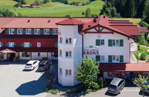 Our pleasure resort Maierhöfen is an Allgäu municipality in the Bavarian Lake Constance region, district of Lindau (Lake Constance). The Natur-Landhaus Krone is located in the Westallgäu between royal castles and Lake Constance, near Oberstaufen. In the middle of the small village Maierhöfen on the outskirts of the village. Open view of the Nagelfluhkette or the spa garden. Stylish holiday nature hotel with alpine wellness area, panorama lounge pool, wellness garden with sensory path and Kneipp mountain spring water course. Our biocomfort rooms are all equipped with wood, glass, stone, linen or leather, as well as with new bathrooms. Comfort with 38 "satellite TV with radio reception, laptop safe and mostly Bakonen. Guaranteed rest in healthy Allgäu when hiking, cycling, swimming in natural lakes or tennis for free at the house. In winter direct access to the tracks and the lift as well as snowshoe hikes to the own mountain hut. Guided hikes in the summer.