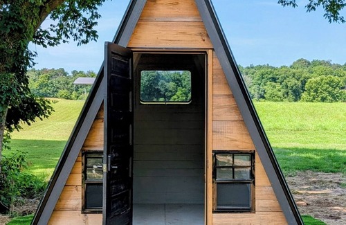 Please note: -This is a tiny A-Frame ( less than 64 sq ft). There are no beds provided. Please provide your own bedding including sleeping bags, air mattress, or cots. -There will be a portable toilet on site for your use. -There is no electric at this site. A small solar power station is rentable for an additional fee.