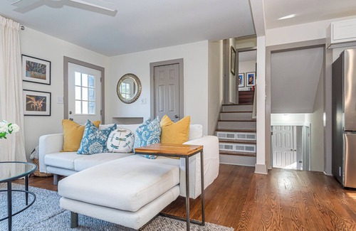 Your home away from home in Durham with 4 lovely bedrooms and a small office area. Pet-friendly in wonderful neighborhood near great shopping, restaurants, and convenient to Duke Hospital and UNC. Enjoy your coffee on the screened porch and the peacefulness of the private backyard. Enjoy cuttings from the gardens! The luxurious primary suite occupies its own floor, with built-ins and fireplace. Primary bathroom has double sinks, expansive counter tops and spacious shower equipped with rainhead shower head. Three bedroom upstairs (or use the 3rd bedroom as a designated office - desk provided). Secondary bathroom has double sinks as well. Beautiful hardwood floors. Located near American Tobacco Trail for walking & biking. Short walk to neighborhood lake where you can enjoy fishing or canoeing or picnicking. Playground at the park for kids and pets! Cook dinner in the beautiful kitchen or on the charcoal grill outside. Thoughtfully and beautifully decorated to provide every comfort.
