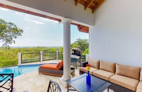 Open the doors and let in the soft island breezes at this beautiful Parrot Tree home that overlooks the Caribbean Sea, mainland Honduras, and Cayos Cochinos! You'll have a private swimming pool to welcome you home from mornings at the beach, a shaded veranda with a dining space and a gas grill, and easy access to gorgeous shorelines and endless outdoor activities on Roatán!