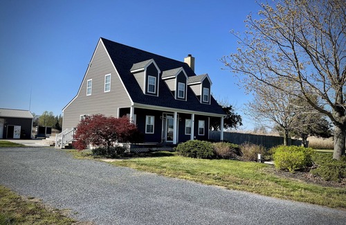 Our home is a completely renovated three bedroom two bathroom Cape. It is on 13 Creekfront acres and also has 2 ponds. It is quite private being on the opposite side of the road of some larger farm homes. Inside our home, you will find a fully remodeled chefs kitchen with GE café appliances. We have two wine coolers built into the island. We have a comfortable couch with a huge beanbag and a very large TV in the living room. We have three wonderful bedrooms. We offer an Amazon fire stick attached to all 4 televisions. The upstairs bathroom has double tropical forest heads, as well as a handheld shower message. We even have a dog shower located in the laundry room. If your Pup goes on an adventure and should get wet and muddy. We have a very large outdoor patio with a sitting area and a 15 foot umbrella. We have a resident blue heron who comes to visit in the pond. We have a long Trex walkway that leads out to a dock overlooking the creek, and a floating dock as well where our pontoon boat is tied. We have just installed a gangway to another floating dock for ease when using the kayaks. Inquire after booking specifically about our boat If you are interested in seeing some beautiful wildlife, our creek is accessible to the Delaware Bay. We offer kayaks for no additional charge. You are more than welcome to fish and crab Out on the dock. We have a built-in hot tub. It is available year-round and sanitized properly in between guests. We have a large outdoor picnic table. We also have a doggie door and a large dog yard that is fenced in. We have placed a carpeted platform out there with two chairs for you to sit with your pups while they play. We also have 2 RV hookups 30 and 50 amps. with water for extra fees. We have an area called the Lookout point if you walk down the small path between the creek and the big pond and you will see beautiful sunsets from there. This is a beautiful sanctuary. You will not be disappointed. A little bit about us, we are super hosts on another platform with 400+ 4.9 star reviews. We are well experienced and try to make every one of our properties very special for our guests.  we look forward to hosting you. Kim and Bob.