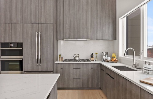 Upon entering this stunning home, you’ll notice exquisite craftsmanship with natural stone and wood accents throughout, high-end features in the kitchen and bathrooms, and an extraordinary amount of natural light pouring into the strategically placed windows that maintain privacy despite its urban setting. This vacation home comes fully stocked with all the essentials: soaps, bed and bath linens, all kitchenware & appliances small and large, basic spices, coffee, board games and puzzles, and baby gear (as requested).