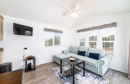 Beautiful tiny house with complimentary wine and coffee, located in an amazing resort with mineral hot spring pools. Quiet, neighborhood with lots of outdoor activities to enjoy. Enjoy the health benefits of mineral hot springs.