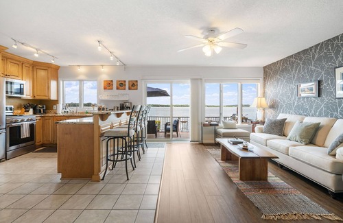 The master bedroom has a full ensuite bathroom with a tub that overlooks the lake for a relaxed bubble bath. All three bedrooms have walk-in closets with two bedrooms having very comfortable queen-sized Murphy beds that can be left down when in use or raised to expand your living area. In the garage you will also find two bikes available for your use on the biking path that can be accessed right across the street.