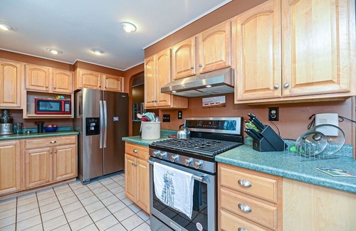 All appliances are stainless & all the beds are brand new as of 2023! The house has hardwood floors except the kitchen and the bathroom. A delightful, peaceful acre is yours to utilize. Firepit. Grill. Outdoor games. Activities stretch from Portsmouth to Boston to the White Mountains to Portland then to multiple beaches and finally back to your get away to this inviting, comfy get away home to relax and unwind.