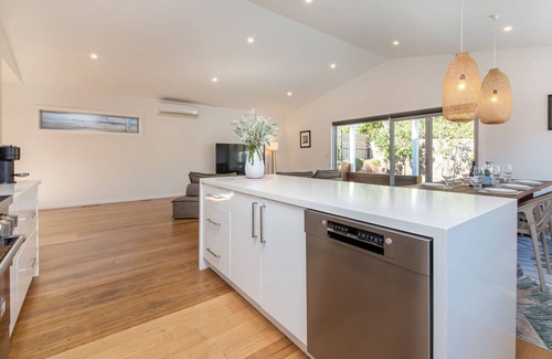 Missy’s Escape offers true coastal lifestyle at this breathtakingly renovated single-level home. Perfectly positioned in a quiet beachside street this luxury home offers everything for your next perfect getaway (including bringing your small furry friend). Guests will love the wonderful sense of peace and tranquility extending out to the al fresco deck and picturesque gardens overlooking a large, private tiled gas heated spa and heated pool by heat pump.*