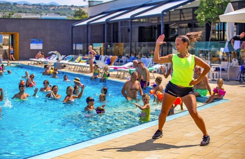 Newly created caravan park directly on the gently sloping, fine-gravel beach with a sandy seabed. Here you can bathe and swim either in the beautiful Pusca Bay with a view of Rijeka or in one of several pools in the complex. Sports and animation programs ensure a carefree and varied holiday. All mobile homes are modern and well furnished, have the same size and equipment and differ from each other only in their location to the beach. Omisalj is the oldest municipality of Krk and is located on the north-west of the island. The location of the town on a 85 meter high cliff was once of great strategic importance. Today you simply enjoy the beautiful view over the Kvarner Bay. In Omisalj there are restaurants, taverns and taverns where you can enjoy the delicious island cuisine and specialties from the region. Highlights included: usage-based energy costs, bed linen, towels, wifi. Activities nearby: Within the complex there is a golf practice facility (also for beginners) with equipment rental (for a fee). Numerous sports competitions and music evenings ensure a varied holiday. Water sports such as diving and sailing are also offered on the beaches of Omisalj. Mobility: Not suitable for people with reduced mobility. Mobile home type Premium, ca. 40 - 80 m from the beach. Occupancy with max. 4 adults and 2 children up to 11 years. With 5 adults an additional fee of 10,- Euro/day will be charged at the reception.