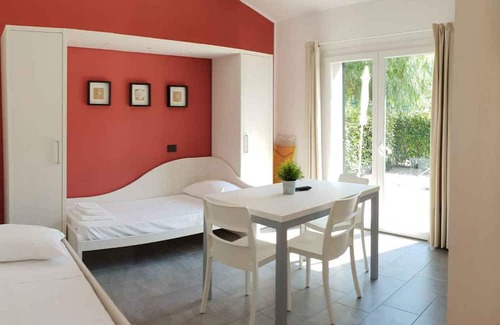 LocationImperia. The mobilehome is located in a holiday complex, on a garden plot. The village is located in the immediate hinterland of the city of Imperia Porto Maurizio and is easily accessible via both the motorway and Via Aurelia. The place is surrounded by the typical hills of the Ligurian landscape and designed with the characteristics of a modern and well-kept tourist village. There are gardens in the village where you can enjoy the silence and the surrounding nature. The buildings are connected by wide avenues that can be reached on foot or by bike. In front of the property you will find the cycle/pedestrian path, which in a few minutes connects to the Riviera dei Fiori cycle path, which runs for about 30 km along the coast. The access goes via a side road. Parking lot (for 1 car) on the property. There is a charging station for electric cars on the property. 1 outdoor parking space free of charge, underground parking on request 8 euros per day Specialair conditioner, central heating. Facilities: internet access (WLAN). TV reception takes place via satellite. PoolOutdoor pool. Children's pool. Open from May to around October 15th, weather permitting, pool hours from 10 a.m. to 7 p.m. - beach with special conditions, approx. 180 m²