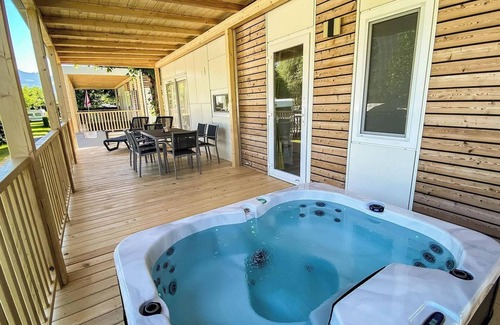 Mobilhome with 2 bedrooms and a terrace with private whirlpool is located in Ossiach. Mobilhome with 2 bedrooms and a terrace with private whirlpool provides accommodation, featuring TV, Balcony/Terrace, Parking, among other amenities. This House features TV, Balcony/Terrace, Parking, to make your stay a comfortable one.