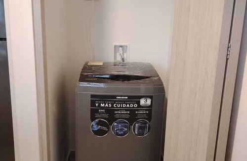 Enjoy a modern apartment on the 13th floor with an impressive panoramic view of Bogotá. Designed for comfort and convenience, the apartment features one bedroom with a double bed and a closet with hangers. There is a cozy sofa bed in the living room as well as a table and chairs. The flat also has a fully equipped kitchen. It includes 1.5 bathrooms (one complete with a shower), a washing machine, and a smart TV with high-speed Wi-Fi. There is a private balcony.