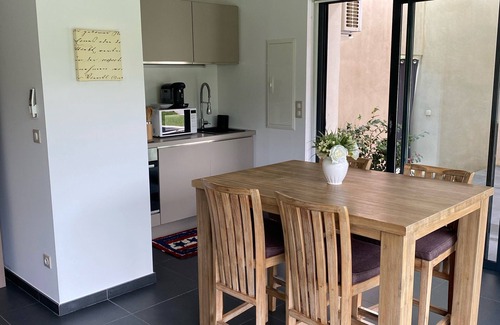 It is tastefully furnished and has all the necessary equipment for your stay (air-conditioning, Wi-Fi...). It is perfect for a couple because it has a master bedroom with modern bathroom, but it can as well accommodate 4 guests thanks to a sofa bed.