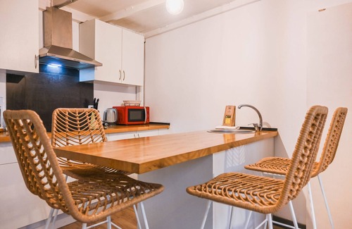 American kitchen: It is fully equipped with high-end appliances, such as an oven, microwave, dishwasher and large-capacity refrigerator. The layout is modern and functional, with a bar or island that separates it from the living room and serves as a space for eating or working.