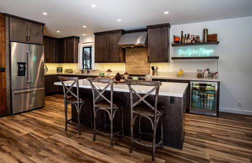 Welcome to The Alpine House, an Austrian-inspired cabin with retro flair and modern amenities within a 5-minute walk to the Village gondola and Red-Line. This family-friendly retreat offers two primary bedrooms, a bunk room, and three full bathrooms. A separate workspace is available and the south-facing deck is ideal for entertaining. We provide a fully stocked chef's kitchen with luxury appliances, high-speed Wi-Fi, smart TVs, quality linens, and high-end toiletries. 30-night minimum stay.