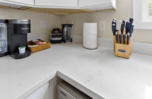 Kitchen: The fully stocked kitchen is equipped with everything you need to prepare meals, including complimentary coffee to start your mornings right.
