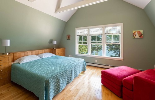 Nestled on the eastern shore of Mere Point in Brunswick overlooking the bay, this modern cottage offers beautiful views, comfortable living areas, and great outdoor space for your Maine retreat.