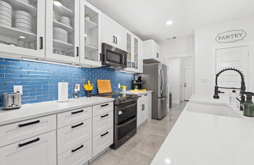 Modern and stylish, this 5BR home is centrally located in Trinity Groves and only a few miles away from the best things to do in Dallas! Check out the popular Margaret Hunt Hill bridge and eat at the delicious Saint Rocco’s! Spend your day exploring the town and spend your nights relaxing in the beautifully furnished outdoor patio while enjoying the sunset! Featuring 7 plush beds and plenty of home entertainment, this getaway is ideal for large groups looking to vacation in comfort and luxury!