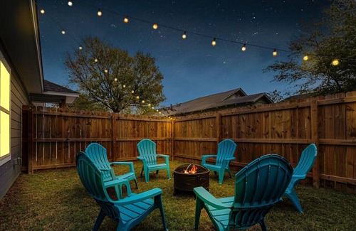 The home's backyard is large, private and spacious. It is the best place to hangout and entertain. It comes with a lounge area around the fire pit, as well as a gas BBQ grill and cornhole.