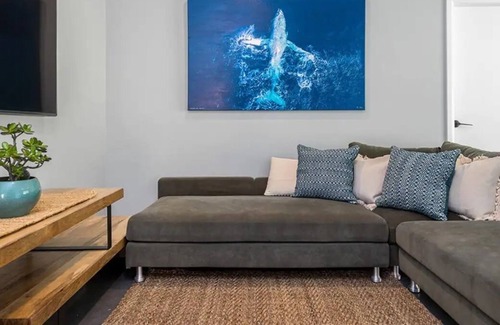 Continue to soak in the views as you step down into the sunken living room complete with a Horizon Edge gas fireplace, Smart TV with Netflix, and designer 4x3m L-shaped luxurious lounge - perfect for really sinking into.