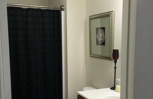 Conveniently located for all events at Bristol Motor Speedway! Property is an end unit townhouse with modern decor in a nice, quiet neighborhood located ~18 miles (20 minute drive) from BMS. Unit has three private bedrooms (3 king beds and 1 full bed in the loft area) and two full bathrooms. Main level of the home opens directly into open concept living, dining and kitchen area and has a master bedroom (king bed) with adjoining full bath. A fully screened in back porch with table and seating for 4 people overlooks a private side yard area. Upstairs space contains two additional private bedrooms with a loft space (that could easily accommodate additional sleeping capacity) and a second full bathroom. Unit has an unfinished walkout basement that opens up to a high end outdoor swinging porch bed and gas grill. Additional amenities include a one car garage space, washer and dryer, two flat screen TVs (living room: 55" and bedroom: 45"), DVD player and premium cable tv package. Rental of this property includes free car parking for up to 3 cars at the Bos Campground and parking lot, which is located less that 1 mile from BMS (~1/2 mile walk).