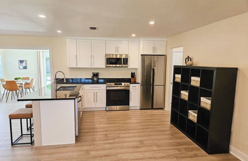 This tastefully updated 3 bedroom/ 2 bathroom private pool home comes with a fenced backyard, ensuring total privacy. The house has an open floor plan, perfect for spending that quality time together. New large Smart TV's with high speed Internet. Kitchen is fully stocked to cook and enjoy meals at home or you are minutes away from Vero's dining scene. Centrally located in Vero Beach, minutes to downtown and beaches.