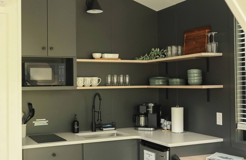 In the midst of the newly renovated Hartman Center Campground, is the Modern Tiny Home! Experience luxurious amenities throughout the Tiny home. Relax in the custom-designed Tiny home or relax in the outdoor seating area, all while being surrounded by an atmosphere only The Hartman Center Campground has to offer!