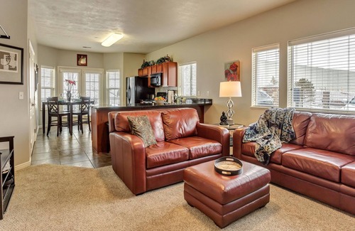 High ceilings and an open-concept living area make this 1,200sf ground floor condo feel spacious and welcoming. 3 bedrooms and 2 full baths easily accommodate up to 6 guests. Tasteful contemporary decor and comfortable furnishings round out the setting for your visit to the Salt Lake area.