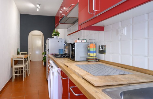 The apartment is located on the ground floor in a quiet building, has a separate entrance and an outdoor space to relax after a long day of walking. The apartment consists of a bedroom with a double bed and a double sofà bed, full hd projector with free use of NETFLIX (archive with over 1000 films and tv series in different languages), free fiber optic wifi (very fast), air conditioning, bathroom with bathtub, independent heating, fully equipped kitchen, washing machine, dishwasher, oven, microwave, kettle, coffee machine, table and iron, upholstery and furniture of excellent quality. To complete your holiday you can rent bikes and have a secure luggage storage for those who fly in the evening.