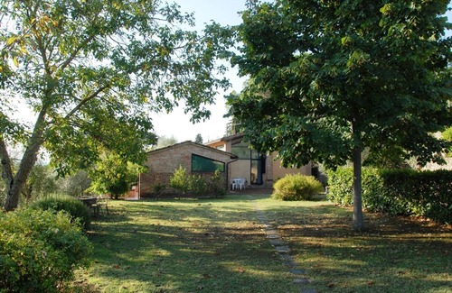 The Capannina was the former granary of this large estate situated in the Siena countryside. It has been totally renovated and transformed into a delightful holiday home for lovers of rural Tuscany. Located to the east of Siena, it is surrounded by large olive groves, vineyards and tilled fields. It would be the perfect choice for a large family or two couples of friends with children. The children can play on the lawn while the adults enjoy the cool shade of the garden. There is a beautiful panoramic view over the countryside with Siena in the background, which is particularly spectacular at sunset. The property is not isolated since it is close to other houses, including Montechiaro Capanna and Montechiaro Torre situated within a radius of 100 metres, each with its own private swimming pool and garden, together providing accommodation for a total of 28 guests. This is perfect for very numerous parties of friends, allowing them to share their holiday while offering each group its privacy. There is a huge range of possible excursions, including the city of Siena and the many delightful little towns of Chianti. The house is surrounded by lawns and has a terrace fully equipped for dining in the open air. Nearby is the private pool (12x8 m, 2 m deep) (01/05-30/10) complete with beach umbrella and sun loungers. The property has central heating and wi fi internet connection. Domestic help, wine tasting, excursions, babysitting, cook and cookery courses are available on request. Parking within the property.