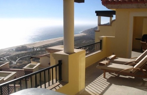 VILLA #11 UNIQUENESS : Quiet private end villa nestled in top row of villas at absolutely highest point in the Resort with KILLER panoramic view of entire resort, Sea of Cortez(sunrises), Pacific Ocean(sunsets), and newly completed Jack Nicklaus/Quivira 18-hole golf course. Most top row villas require check-out New Years Day (1/1). With Villa #11 you can check-out day after New Years (1/2) or even later until 1/17.