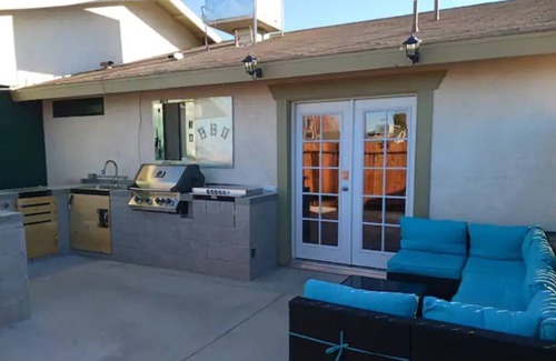 Cozy custom interior suite with backyard, FULL outdoor kitchen, and large DOG Door!! Near Petroglyph Museum. 1 mile to China Lake & Ridgecrest Hospital. Sunlit patio, interior kitchenette! "Gateway" affectionately named after the street itself, is the final commercial intersection in town. Gas up...71 miles to the Western edge of Death Valley & onward to Furnace Creek Visitor Center. Stay includes fastest internet available, at 1,000 Gbps. Nature photos are local, travel destinations.