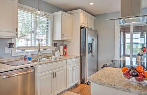 Nestled on a serene plot of Kentucky hillside overlooking Lake Cumberland, this gorgeous 3-bedroom, 2-bath vacation rental is the perfect escape to nature. This Monticello house is highlighted by an expansive multi-level deck, perfect for enjoying a meal al fresco. Head inside and you will find bright furnishings, an open floor plan, and a stunning kitchen, offering comfort as soon as you arrive. Don't forget to head to Conley Bottom Resort to rent a boat for endless possibilities for adventure!