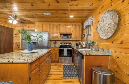Escape to the enchanting Moonshine Run, a cozy cabin nestled in the heart of Blue Ridge, Georgia. This rustic retreat offers a perfect blend of comfort and charm, making it an ideal getaway for families or small groups seeking tranquility in nature.