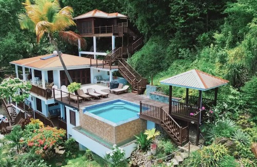 The property is the perfect escape for travelers, nature lovers, honeymooners, friends and family. Moringa Villa offers panoramic views of the majestic Piton as well as the lush, green hills and mountains from the romantic plunge pool, the terrace, and even from the room of this rental unit. What a sight to behold!