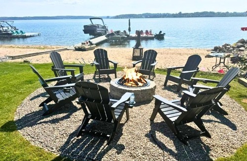 Welcome to Morningview Lakehouse! Just 1.5 hrs from Toronto with its own 50' shallow entry private beach, oversized manicured lawn, roof top lounge, a dance floor sized dock, kayaks, SUPs, fire pit, sauna, outdoor dining, and more!